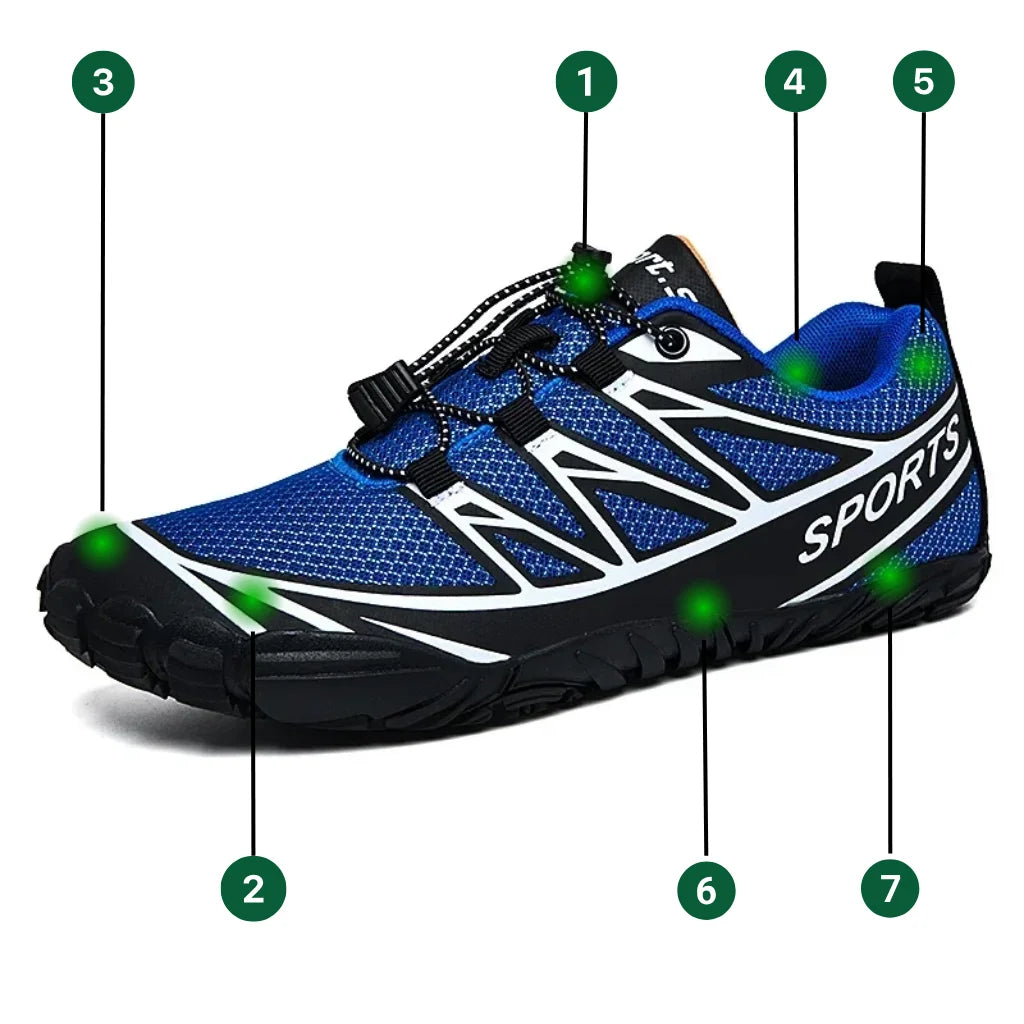 Les chaussures Sadoper AquaGrip™sont conçues pour offrir un confort inégalé lors de la marche, tout en soulageant les douleurs des pieds et en améliorant la posture. Grâce à leur semelle antidérapante, elles empêchent les glissades et les chutes sur toutes les surfaces, offrant ainsi une sécurité optimale pendant vos activités comme la randonnée, la course, ou la marche quotidienne.