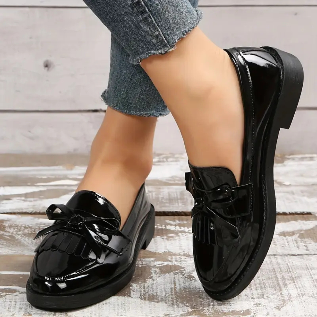 Ces mocassins à plateforme en cuir verni vous offrent un confort optimal grâce à leur semelle amortissante et leur forme ergonomique. Idéals pour marcher toute la journée, ils combinent confort et style.