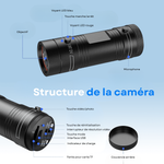 La batterie intégrée offre jusqu’à 4 heures d’autonomie en enregistrement continu.
